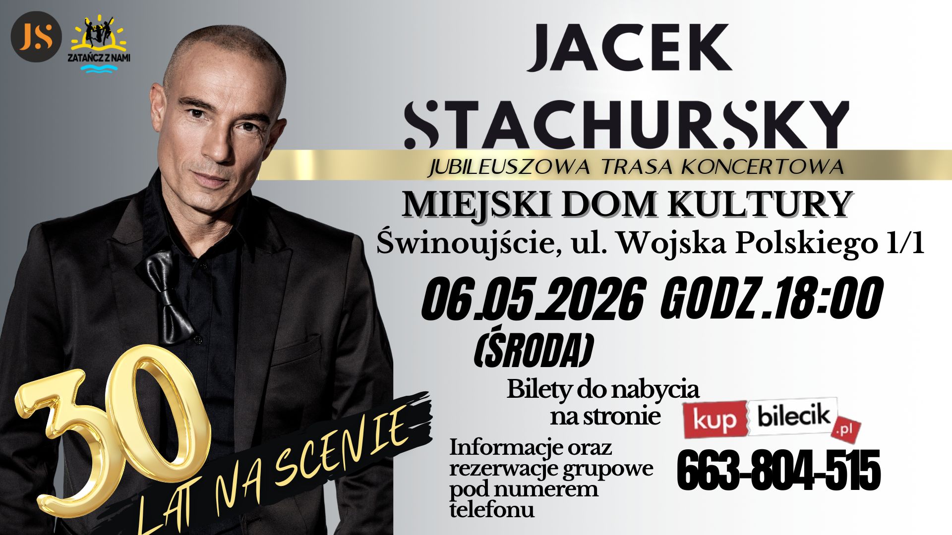 Jacek Stachursky - wokalista, twórca oraz legenda muzyki pop świętuje swój jubileusz! Z okazji 30-lecia pracy artystycznej wyrusza w ogólnopolską trasę koncertową. Podczas koncertu usłyszycie największe przeboje, takie jak "Typ niepokorny" czy "Zostańmy razem", które od lat towarzyszą kolejnym pokoleniom fanów.