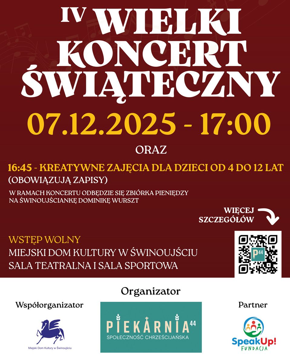 Wydarzenia7 grudnia 2025 o godzinie 17:00 spotykamy się w sali teatralnej Miejskiego Domu Kultury w Świnoujściu, aby wspólnie poczuć magię nadchodzących Świąt.