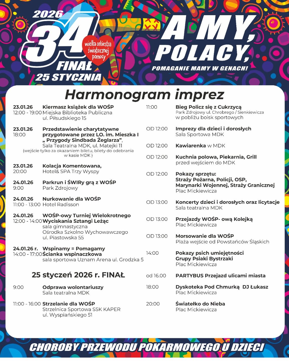 W programie wydarzenia przewidziane są koncerty, występy artystyczne, licytacje charytatywne oraz wiele atrakcji dla dzieci i dorosłych.