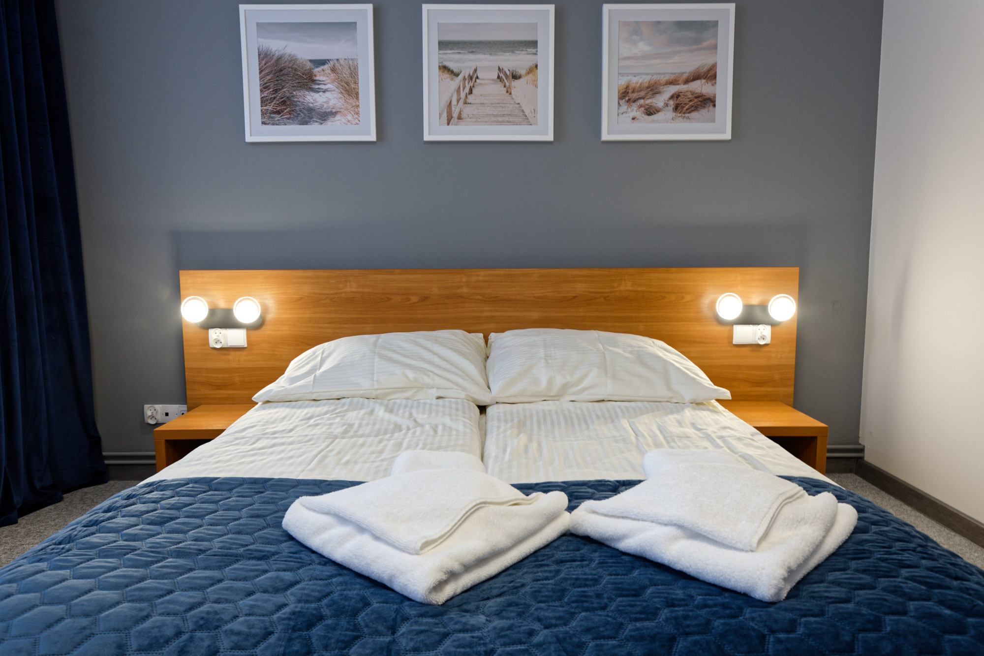 Znajdujący się w przeciwległym skrzydle budynku apartament jest lustrzanym odbiciem ZIELONEGO. Tu z kolei postawiliśmy na kolejny symboliczny dla Świnoujścia kolor – niebieski. Kolor kojarzący się z morzem, a więc i plażą, najszerszą na całym Pomorzu Zachodnim. Również w tym pokoju można liczyć na szereg udogodnień, z których może skorzystać do czterech osób.