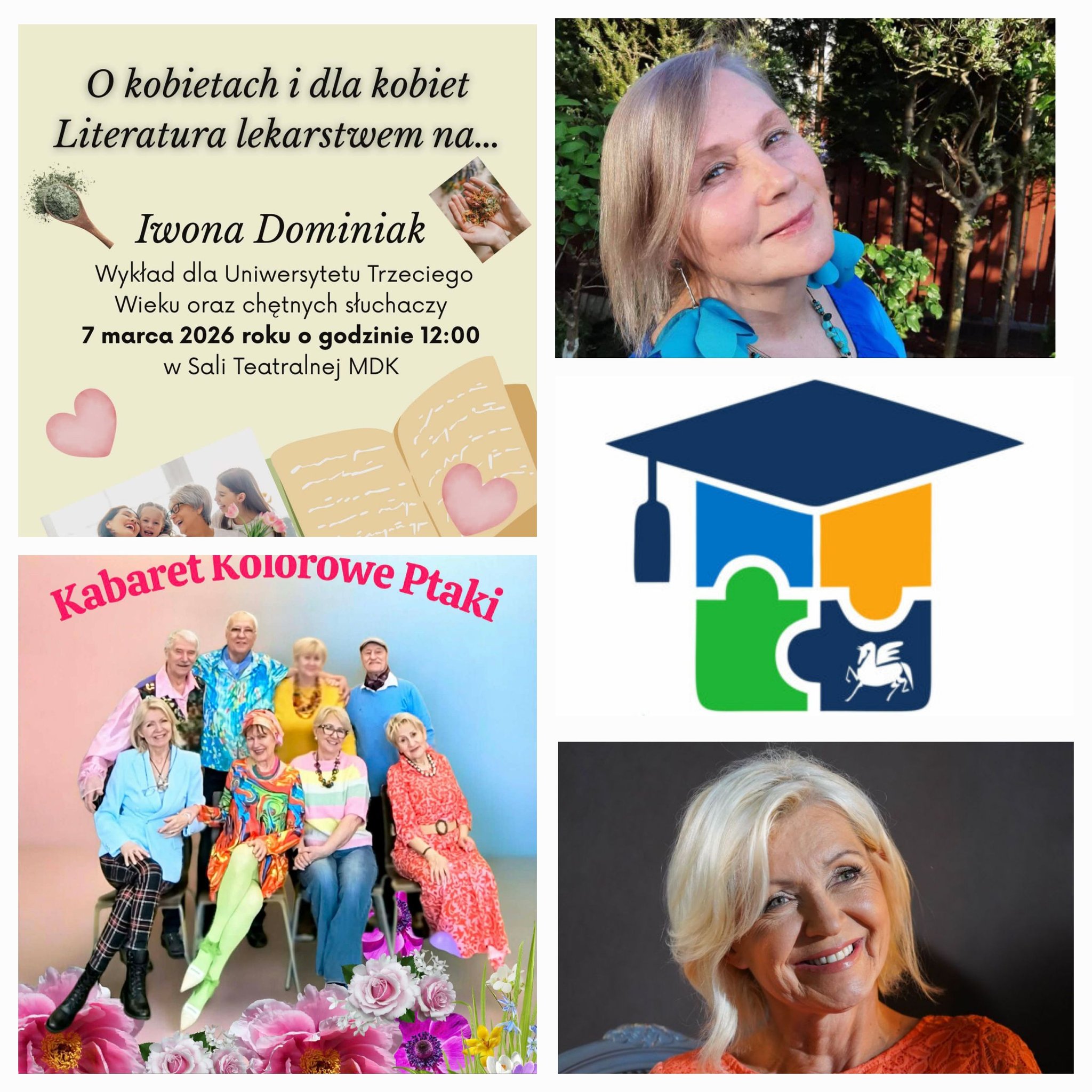 Zapraszamy Państwa w sobotę 7 marca 2026 o godz.12.00 do sali teatralnej MDK przy ul.Matejki 11 na niezwykły wykład Pani Iwony Dominiak pt. „O kobietach i dla kobiet - Literatura lekarstwem na...” w przededniu Dnia Kobiet. ![]()
