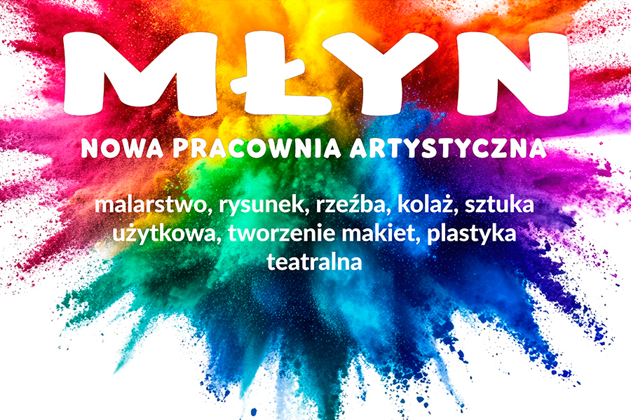 Zapraszamy do nowej, wielodyscyplinarnej pracowni artystycznej „MŁYN”, która łączyć będzie szeroko rozumiane sztuki wizualne (m.in. malarstwo, rysunek, rzeźba, kolaż), sztukę użytkową, tworzenie makiet, plastykę teatralną (konstruowanie lalek – kukiełki, pacynki, marionetki, projektowanie scenografii i kostiumów teatralnych). Tworzywem, poza tradycyjnymi materiałami plastycznymi, będą dla nas materiały naturalne oraz te pochodzące z recyklingu. Podczas zajęć poznamy pojęcia z dziedziny szeroko rozumianej sztuki, sylwetki wybitnych twórców (malarzy, rzeźbiarzy, designerów, architektów). W powstających podczas zajęć pracach ważny będzie nie tylko efekt, ale również sam proces artystyczny, dochodzenie do indywidualnych rozwiązań, inspirujący czas spędzony w grupie.